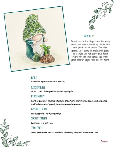*One bookmark OR a mini card featuring the Gnome of the Month and his/her signature quote